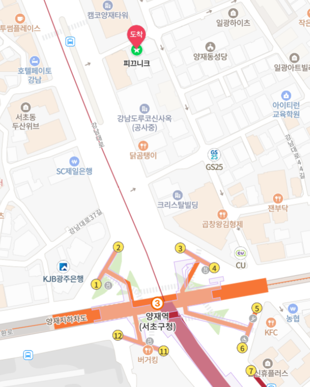 양재역 3번 출구에서 가까운 곳에 위치한 피끄니크 비스트로