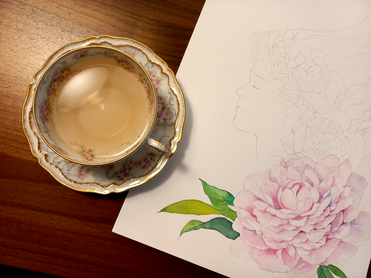 덕분에 화실에 들고 갈 수 없던 스케치를 가지고 가 채색을 시작할 수 있었다 (사실 난 내내 사람을 그리고 싶었다 ㅎ)